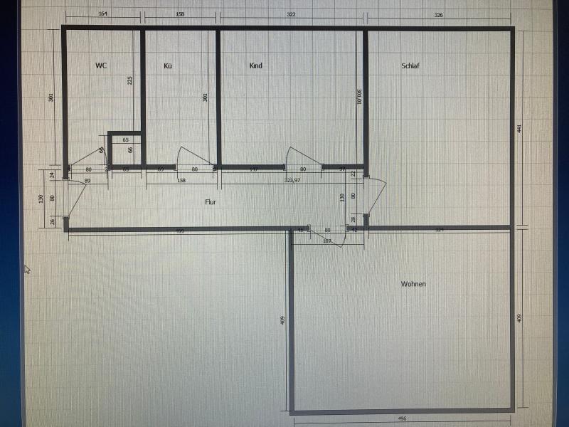 3 Zimmer, Küche, Bad, Flur. In einem unberäumten/nicht renovierten Zustand.