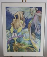 Dieses einzigartige und fantasievolle Gemälde der Künstlerin Randi Grundke vereint verspielte und emotionale Bildkomponenten. Durch die teils surreal anmutenden Kompositionen werden innere Situationen und seelische Zustände illustrativ widergespiegelt- ohne explizit erzählerisch zu sein. Ideal für Liebhaber*innen emotionaler Verspieltheit und fantasievollem Flair.